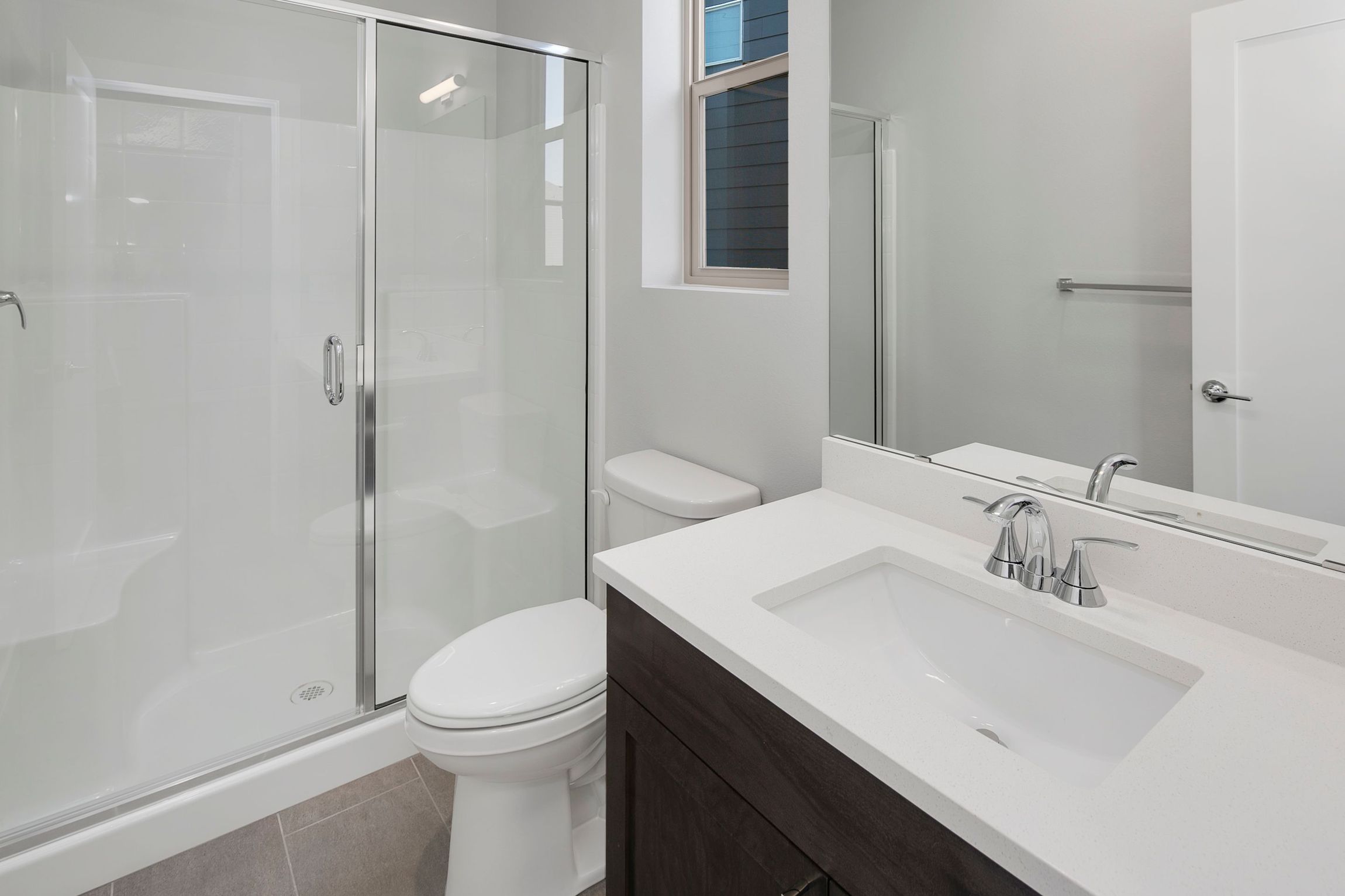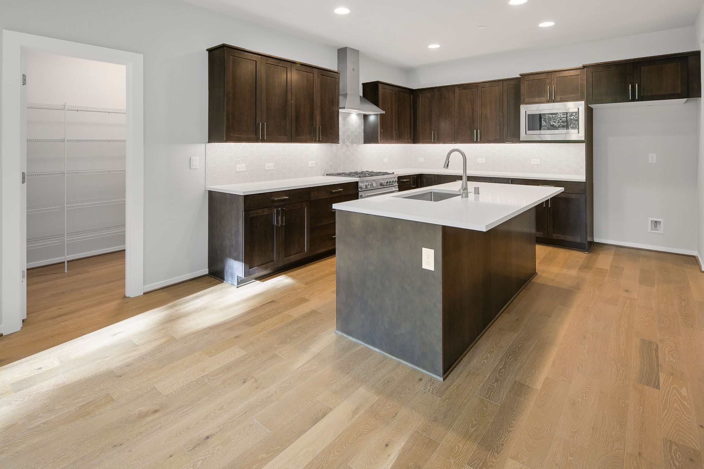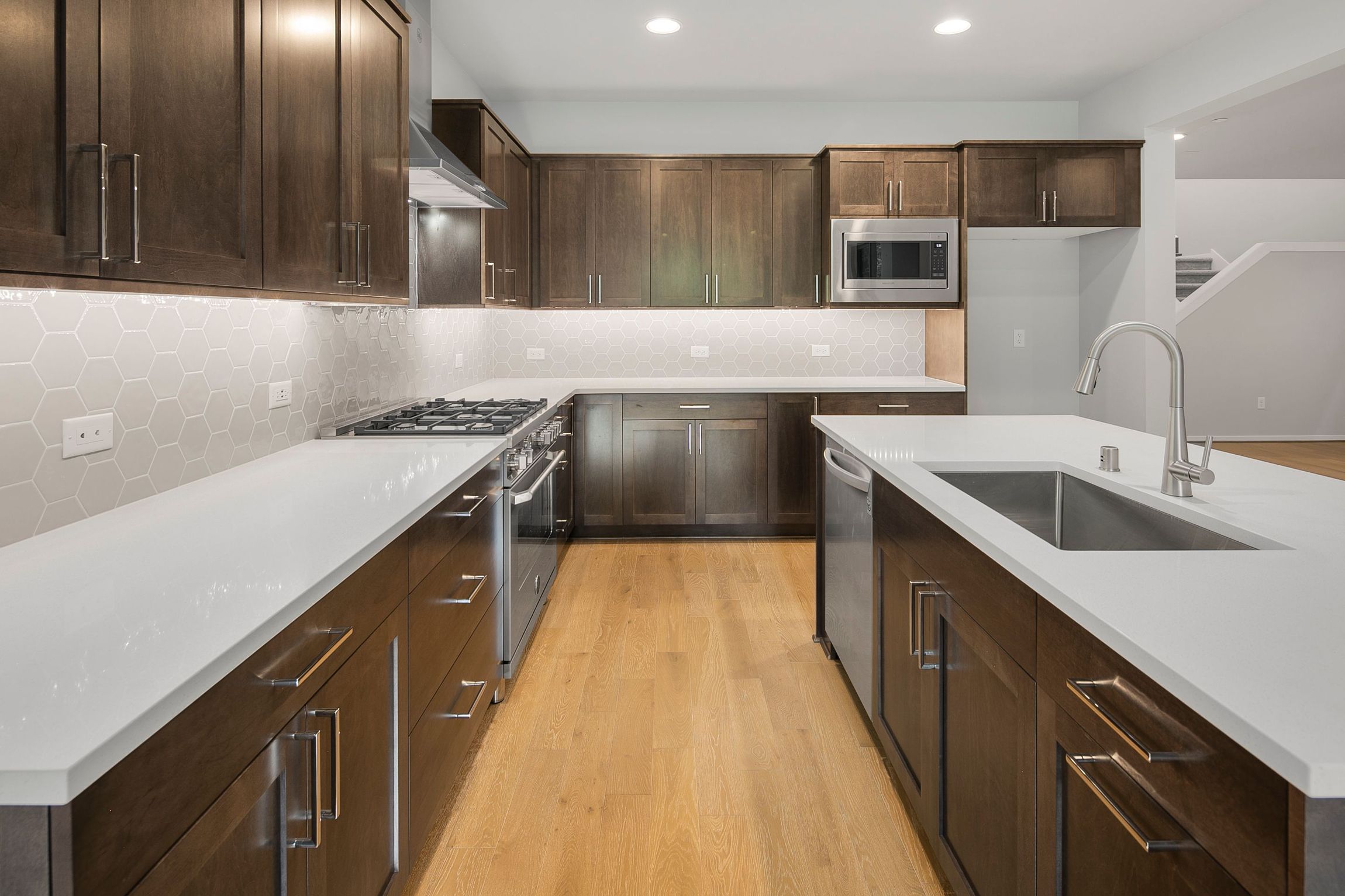 This impressive 3,476 sq ft, two-story home offers 5 bedrooms and 3.25 bathrooms, combining elegance with functional living. The main floor greets you with hardwood floors, a powder room, and a guest suite with a 3/4 bathroom, perfect for visitors or multi-gen living. The open layout includes a spacious contemporary kitchen with a 5-burner gas range, quartz counters, and a large walk-in pantry. It flows seamlessly into the great room with a stunning fireplace. A pocket office with a built-in desk is next to the dining area that leads to a covered patio where you can enjoy indoor-outdoor living.