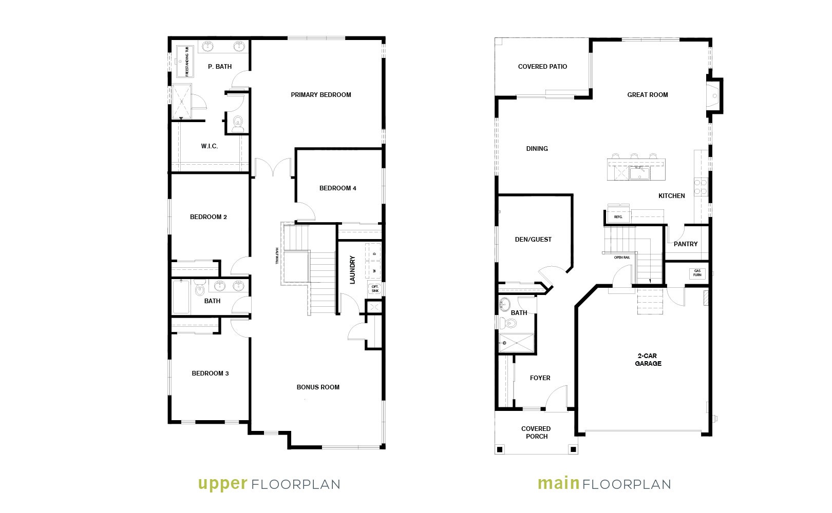 Homesite 13 features the 3006 plan, a 2,710 sq ft, two-story home with 5 bedrooms and 2.75 bathrooms, providing plenty of space for daily living and entertaining. The hardwood main floor welcomes you with a covered front porch and an inviting foyer with a coat closet. A convenient main-floor bedroom and 3/4 bathroom offer flexibility for guests or a home office. The open-concept kitchen, complete with a luxury 5-burner gas range and quartz counters, flows seamlessly into the great room with a stunning contemporary fireplace. The dining area leads to a covered patio, perfect for indoor-outdoor gatherings.
