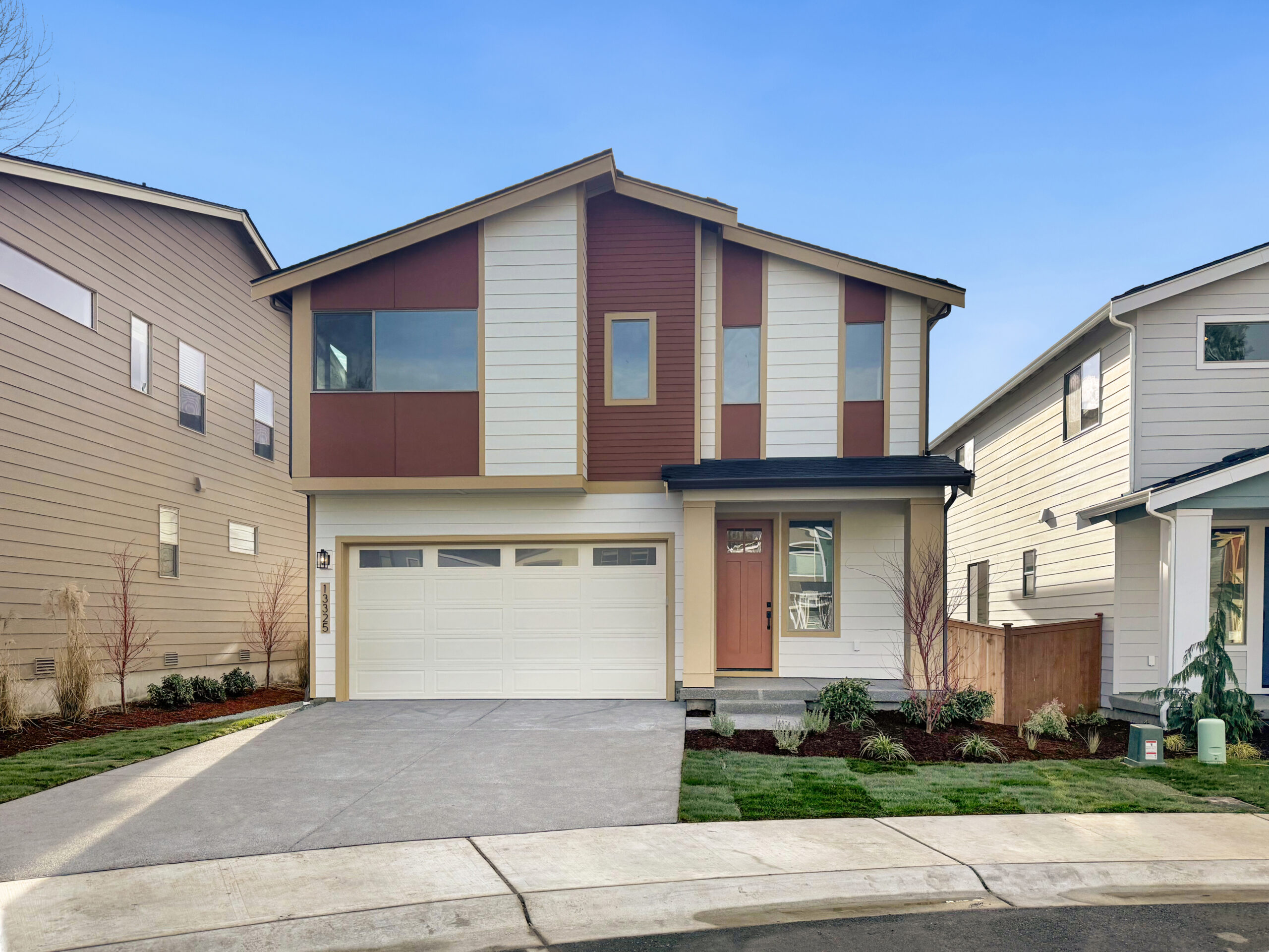 With 2,710 sq. ft., the Whidbey plan has 5 bedrooms, 2.75 bathrooms, and is thoughtfully designed for comfort and functionality. The main floor welcomes you with a covered porch and a foyer that includes a large coat closet for added convenience. You’ll appreciate the den/guest bedroom with a 3/4 bathroom, perfect for guests or a home office. The great room flows seamlessly into the kitchen (with a walk-in pantry!) and dining area, where easy access to a covered patio allows for outdoor relaxation.