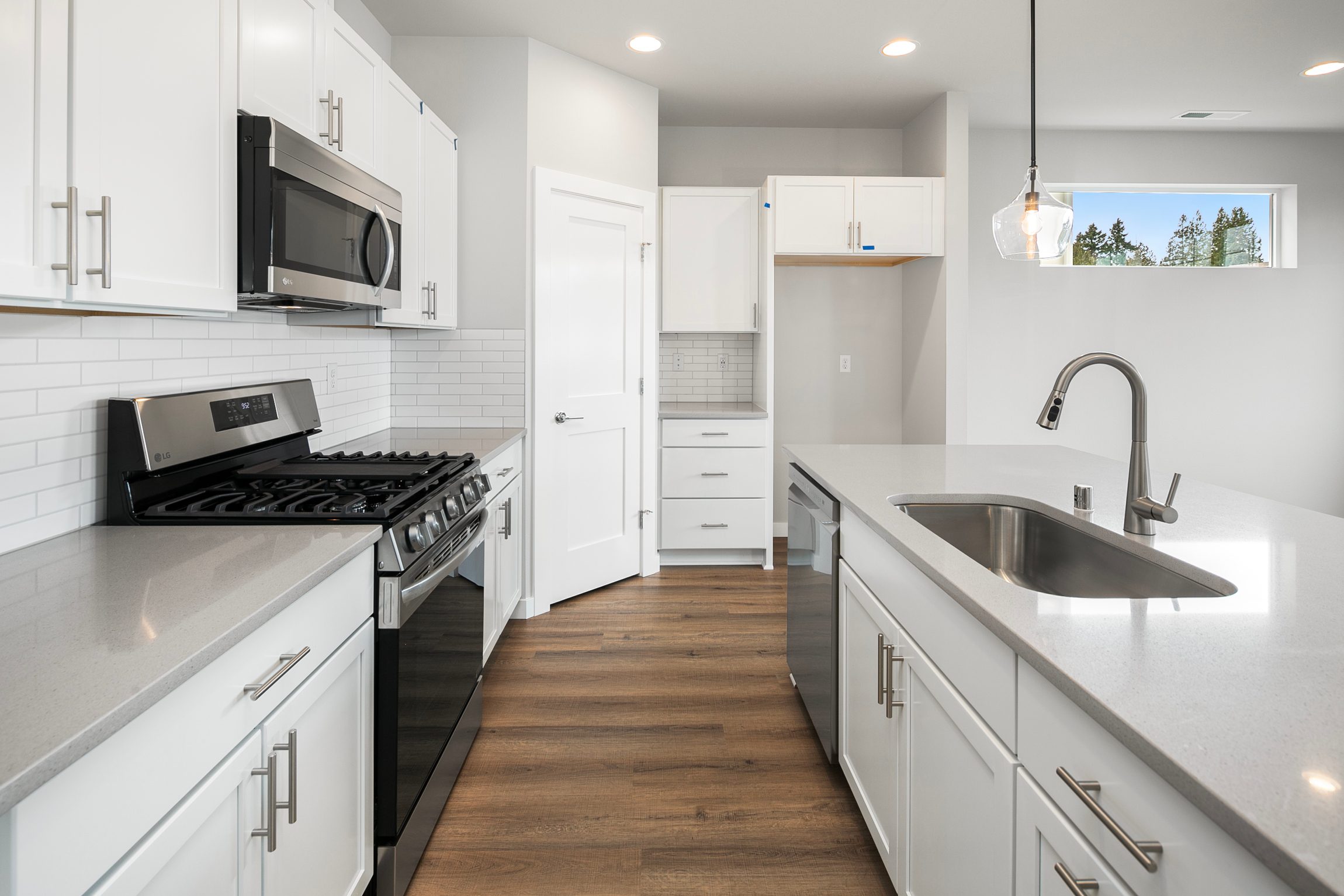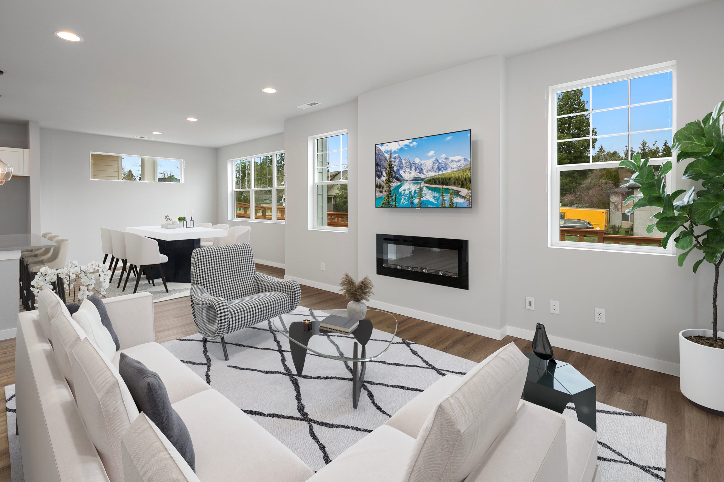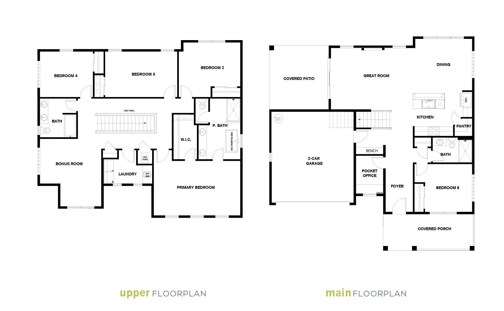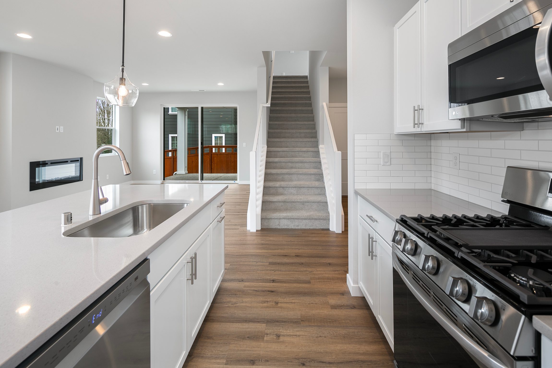 Move-In-Ready! Discover the elegance of our brand new A2 Plan featuring a spacious, open kitchen with quartz counters, tile backsplash, and under-cabinet lighting. Luxurious vinyl plank flooring and an inviting electric linear fireplace enhance the main level, alongside a bedroom, pocket office, and 3/4 bath. Upstairs, the expansive primary suite boasts a 5-piece bath with double sinks, an oversized shower, and a standalone tub. Three additional well-sized bedrooms and a generous bonus room await. Enjoy the fully fenced, beautifully landscaped yard and relax on the covered porch with a gas BBQ stub.
