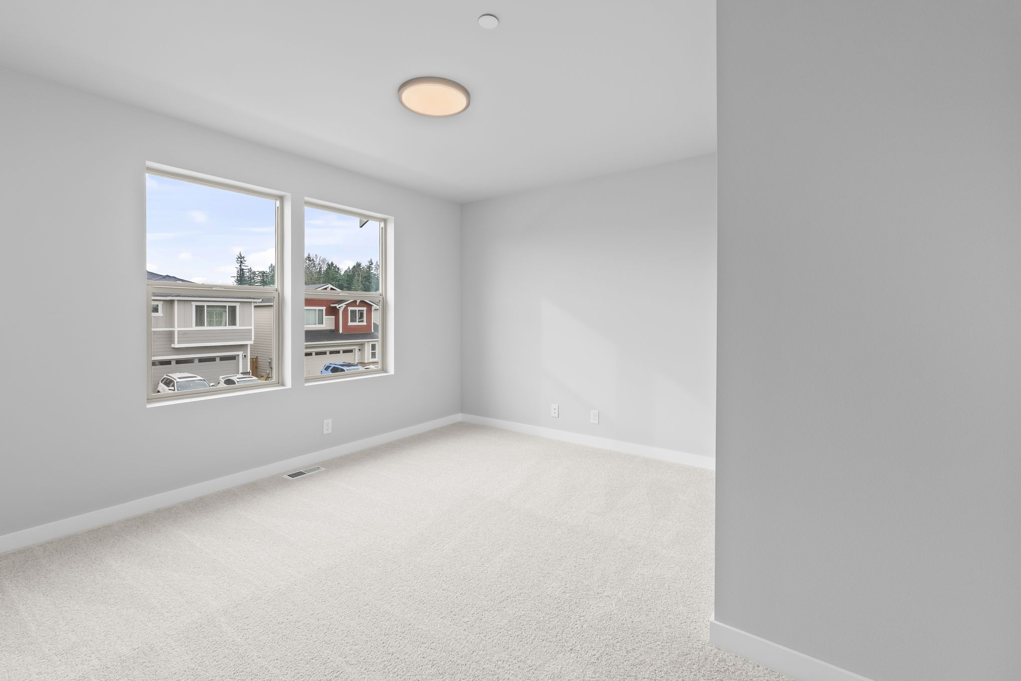 The main floor starts with an attractive covered porch and a welcoming foyer that leads to a pocket office with an optional built-in desk, perfect for working from home. It also includes a powder room and a guest casita with a 3/4 bath – an ideal space for guests or multi-gen living – with an option to add a small kitchen for added comfort. The kitchen boasts a large pantry with an outlet and connects seamlessly to the light-filled great room (with an option of adding a fireplace) and dining area. Easy access to a covered patio makes indoor-outdoor entertaining a breeze.