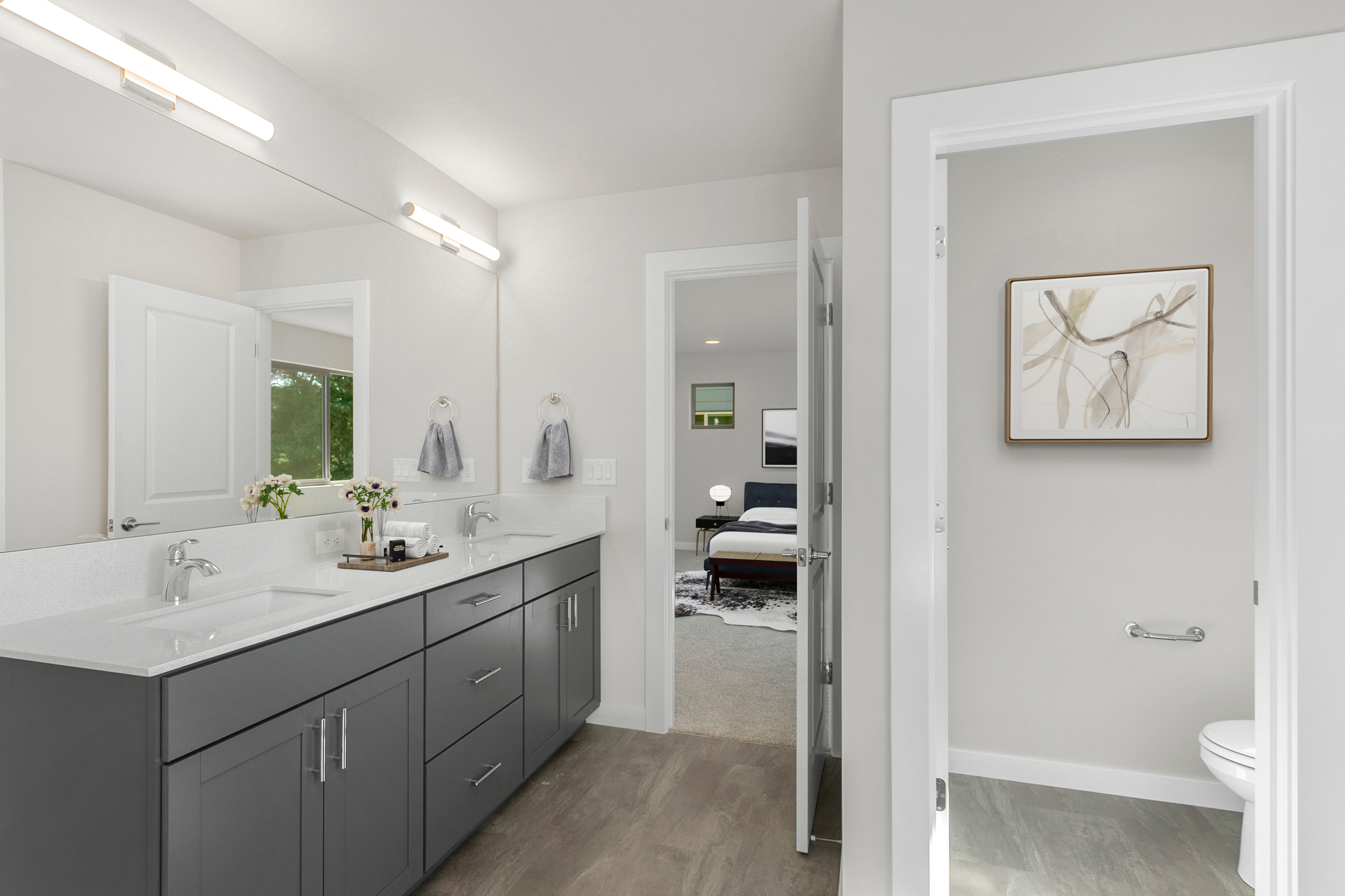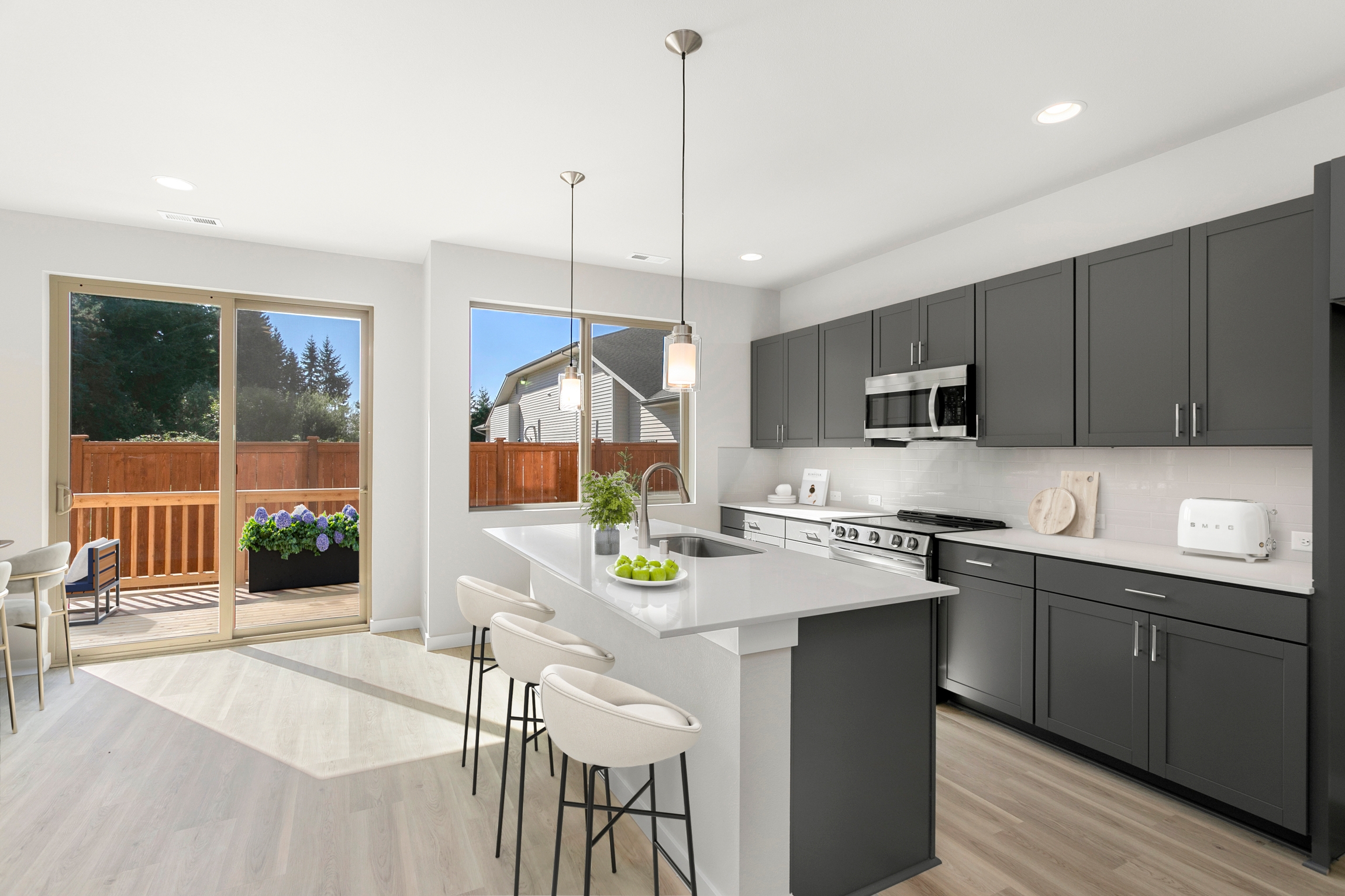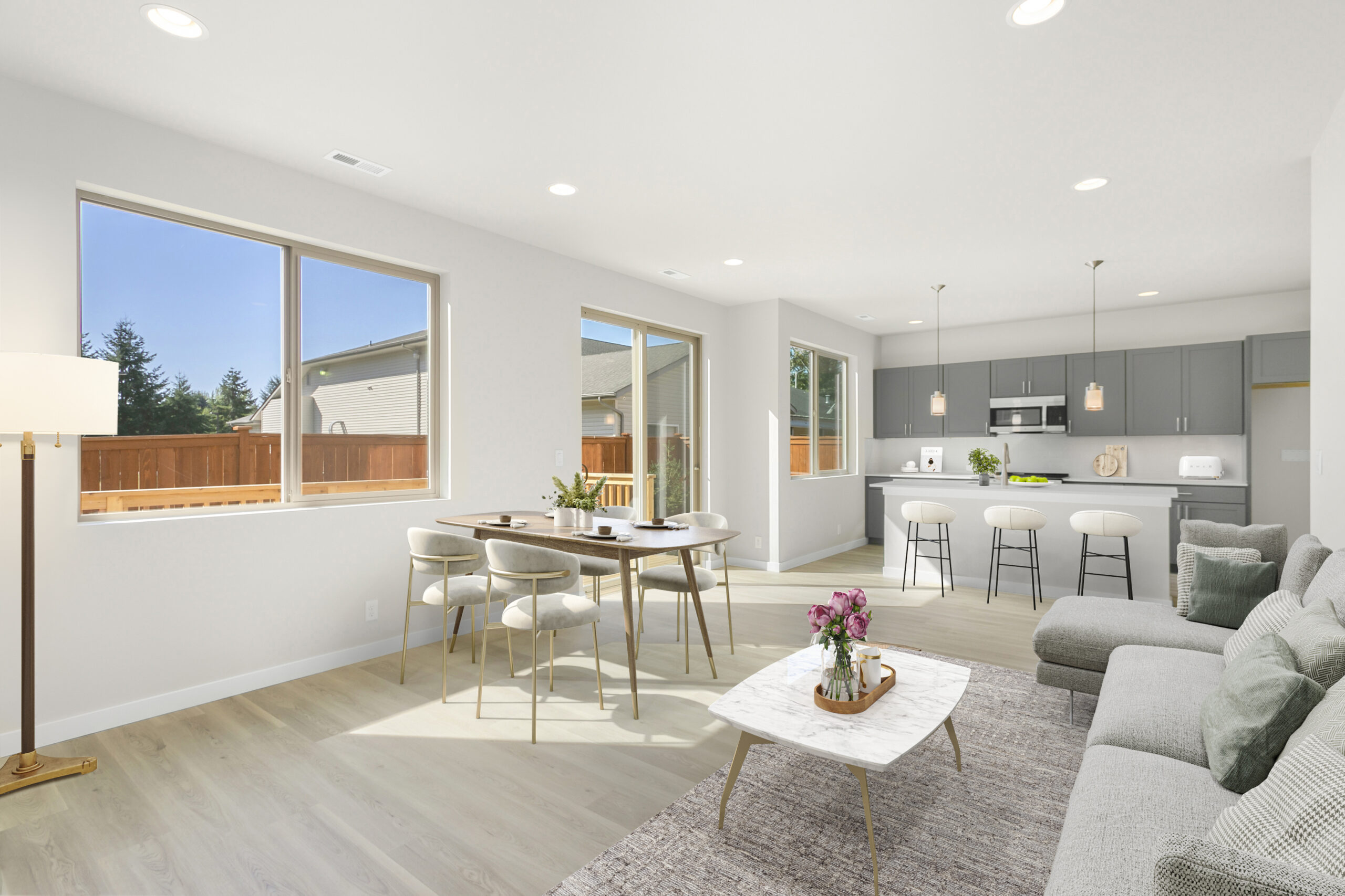 The Alder is a versatile home designed for growing households, offering 4 bedrooms, 2.75 baths, and 2,400 square feet of stylish, functional living. The main floor includes an optional den or bedroom, a pocket office, and a spacious great room that flows effortlessly into the dining and kitchen area.