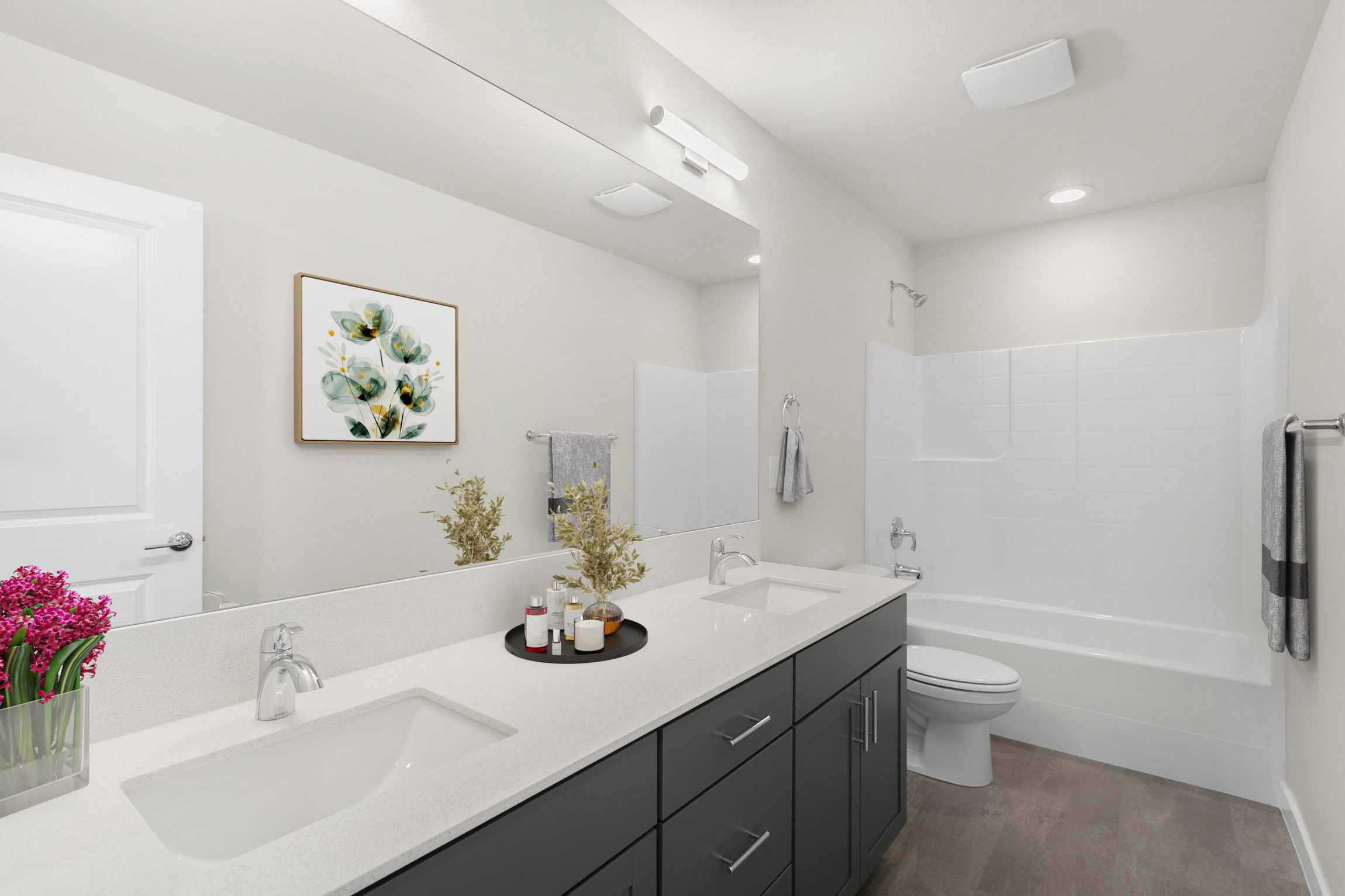Upstairs, a generous bonus room anchors the bedroom layout, providing additional space for media, games, or a quiet retreat. Thoughtful details like dual walk-in closets in the primary suite, a large pantry, and optional features like a freestanding tub or built-in desk make the Alder a true blend of form and function.