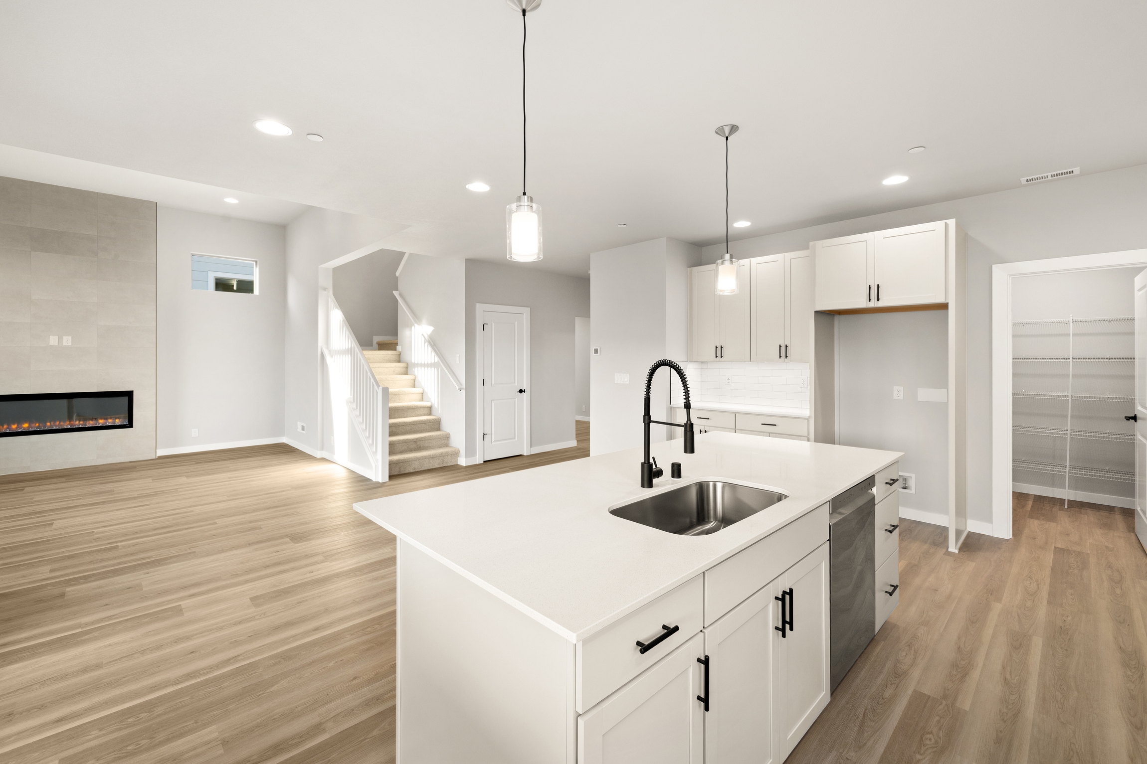 With an impressive 3,022 sq ft, the Hawk plan is Conner Homes’ largest home at Uplands, featuring 5 bedrooms and 3.25 bathrooms. The main floor begins with a covered porch and a foyer leading to a large great room with 12-foot ceilings and plenty of windows designed to maximize natural light. The spacious kitchen features a walk-in pantry with an outlet, a gas range, and lots of counter space and cupboards, including a “tech space”, perfect for surfing the Internet or homework. Easy access to a large partially covered patio creates endless opportunities for indoor-outdoor living.