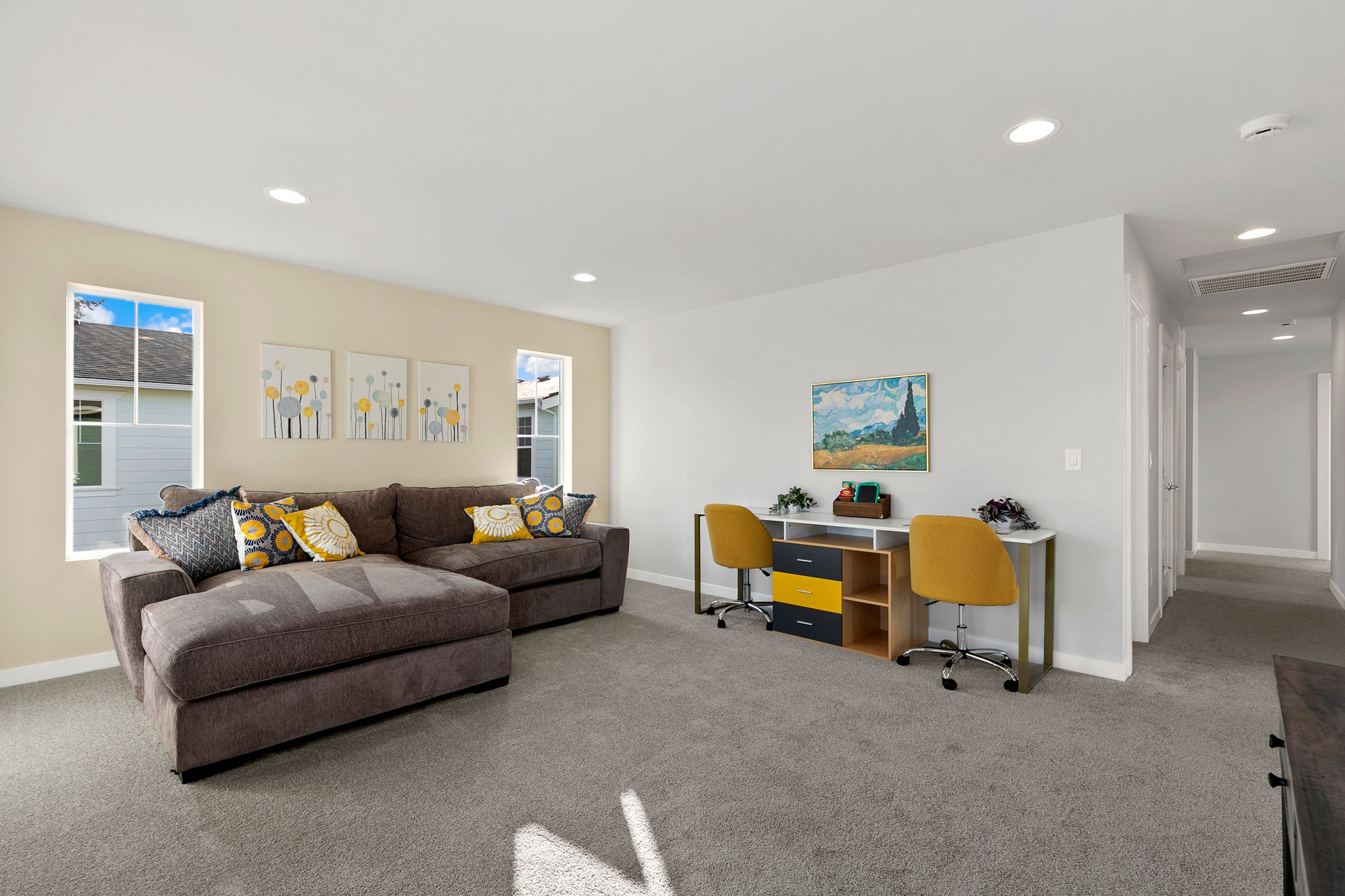 Our highly sought-after Plan H features a spacious kitchen with soft-close cabinets, quartz countertops, subway tile backsplash, and under-cabinet lighting. The main level includes luxury vinyl plank flooring, an electric linear fireplace, and an open office. Upstairs, enjoy a functional primary suite with a luxurious ensuite, including double sinks, quartz countertops, tile floors, and a walk-in shower. Two additional well-sized bedrooms and a large bonus area complete the upper level. The beautifully landscaped, fully fenced yard includes a covered porch/patio with a gas BBQ stub.