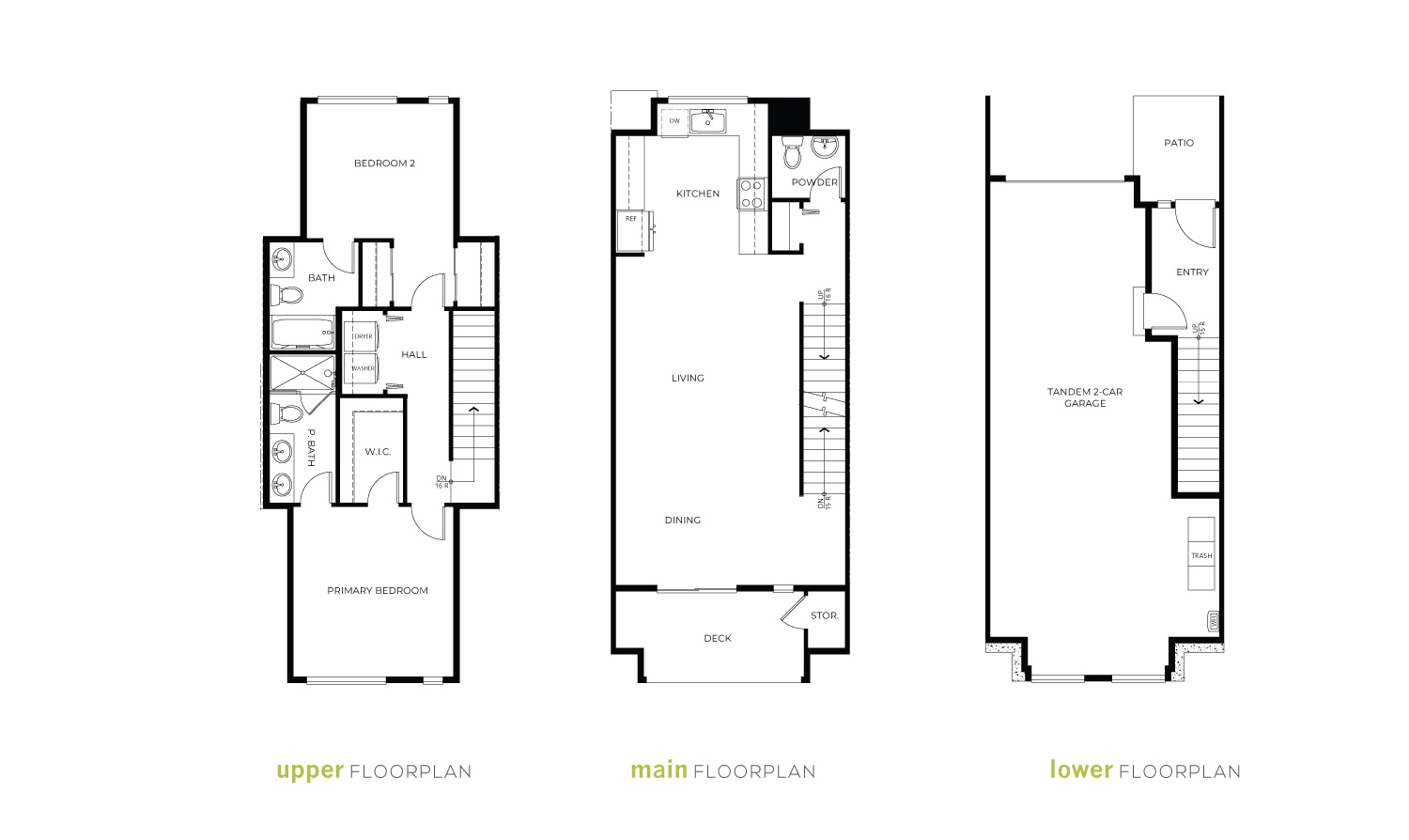 The Birch is a thoughtfully designed three-level townhome that makes the most of every square foot. The main floor features an open-concept great room, dining, and kitchen area, creating a comfortable space for everyday living and entertaining. A convenient powder room and access to a private deck complete this level.