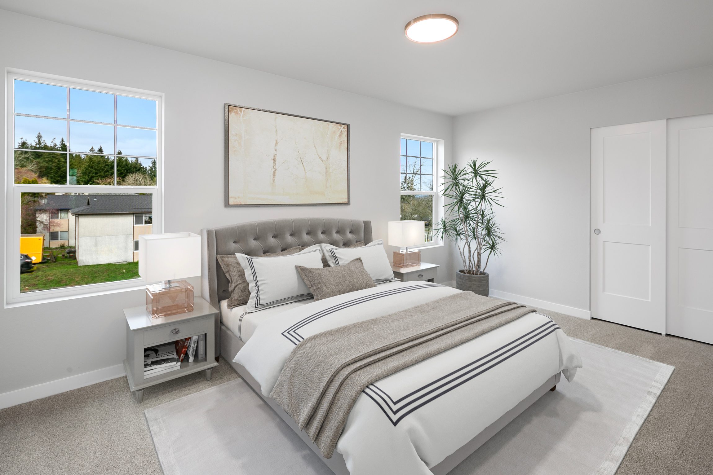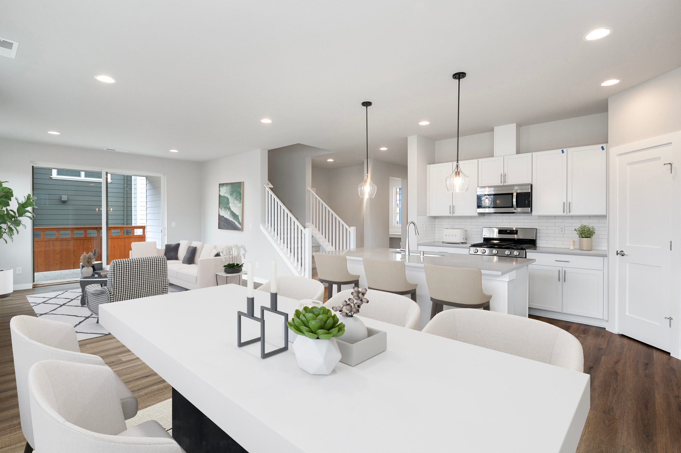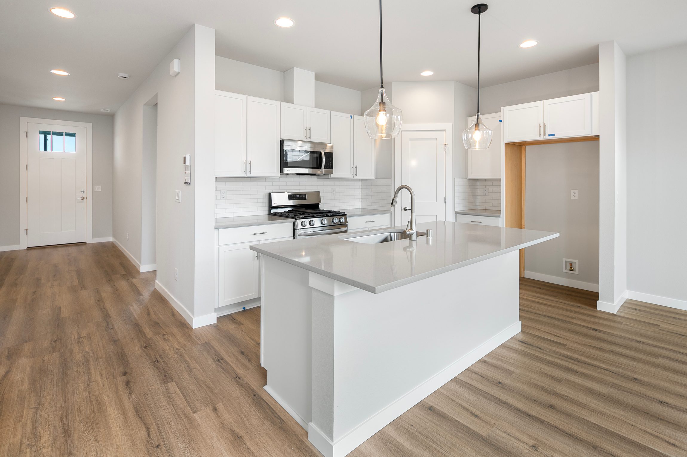 This 2,607 sq ft, two-story home features 4 bedrooms and 2.75 baths, designed with a spacious, open layout ideal for modern living. The main floor welcomes you with a light-filled foyer that leads to an open-concept kitchen, dining area, and great room, all connected to a covered patio—perfect for entertaining. The kitchen is equipped with a large island and a walk-in corner pantry, ensuring seamless cooking and hosting experiences. A dedicated office offers a quiet workspace, while a main-floor bedroom and bathroom add flexibility. The home also includes a two-car garage and four elevation options to suit your style.