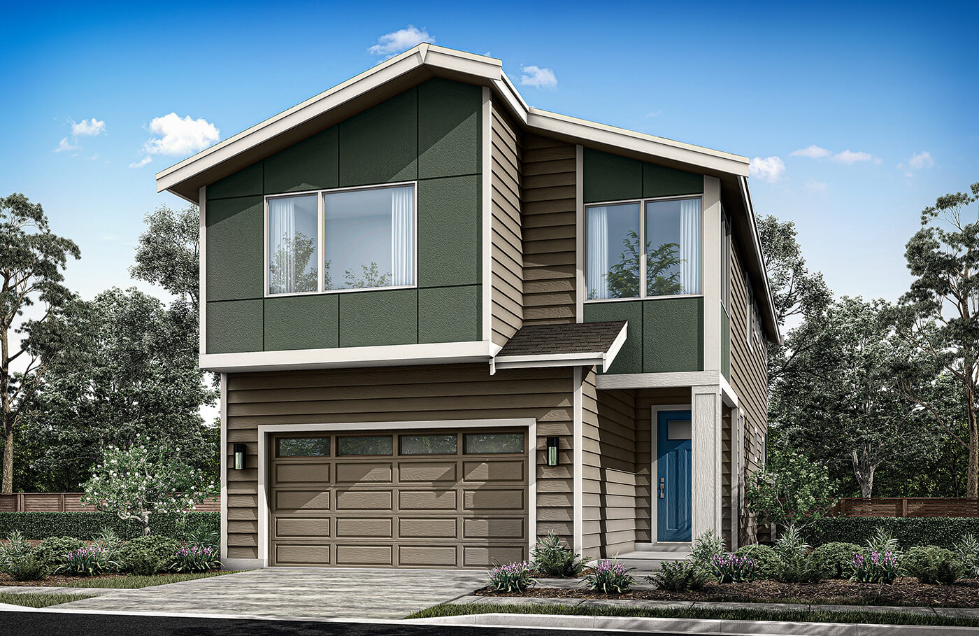 The Rainier floor plan packs a lot into its 2,101 sq. ft. It features 4 bedrooms, 2.25 bathrooms, a 2-car garage, and spacious great room, which seamlessly integrates with the kitchen and dining area. Add an optional contemporary fireplace to make a bold designer statement and warm ambiance during chilly winter evenings. If you enjoy indoor-outdoor living, a large partially covered patio is at the ready.