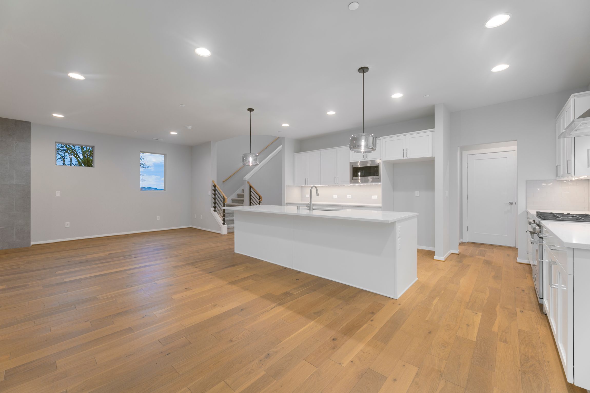 This well-designed 2,460 sq ft, two-story home offers up to 4 bedrooms, 2.5 bathrooms, and a 2-car garage. Step through the covered front porch into an inviting main floor with hardwood flooring and an open gourmet kitchen, great room with a cozy contemporary fireplace, and a dining area that leads to a covered patio—perfect for indoor-outdoor living. A powder room and mudroom add extra convenience.