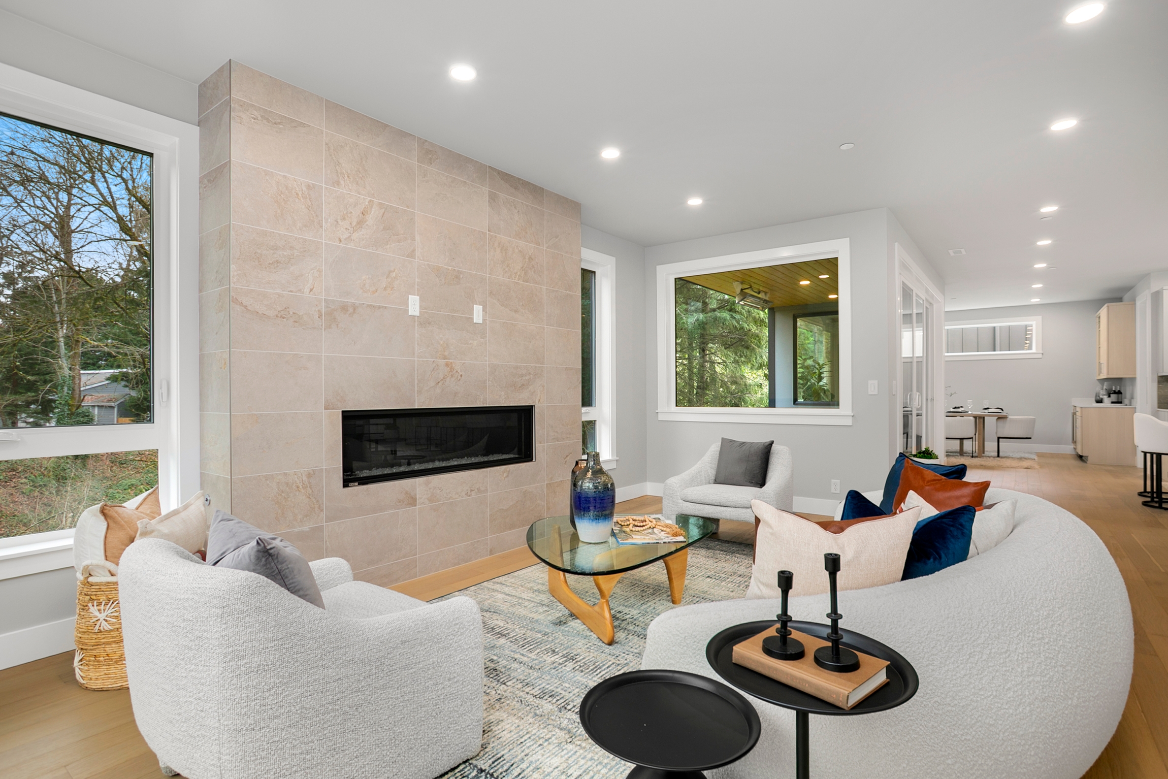 From the moment you enter Residence 1 at Richards Ridge, you’ll immediately notice the thoughtful design and high-end finishes that set this home apart. The lower floor features an oversized bonus room that doubles as a guest suite, complete with a private covered patio, full bathroom, and built-in cabinets. Oversized windows trimmed with quality millwork flood the space with natural light, creating a warm and welcoming retreat.