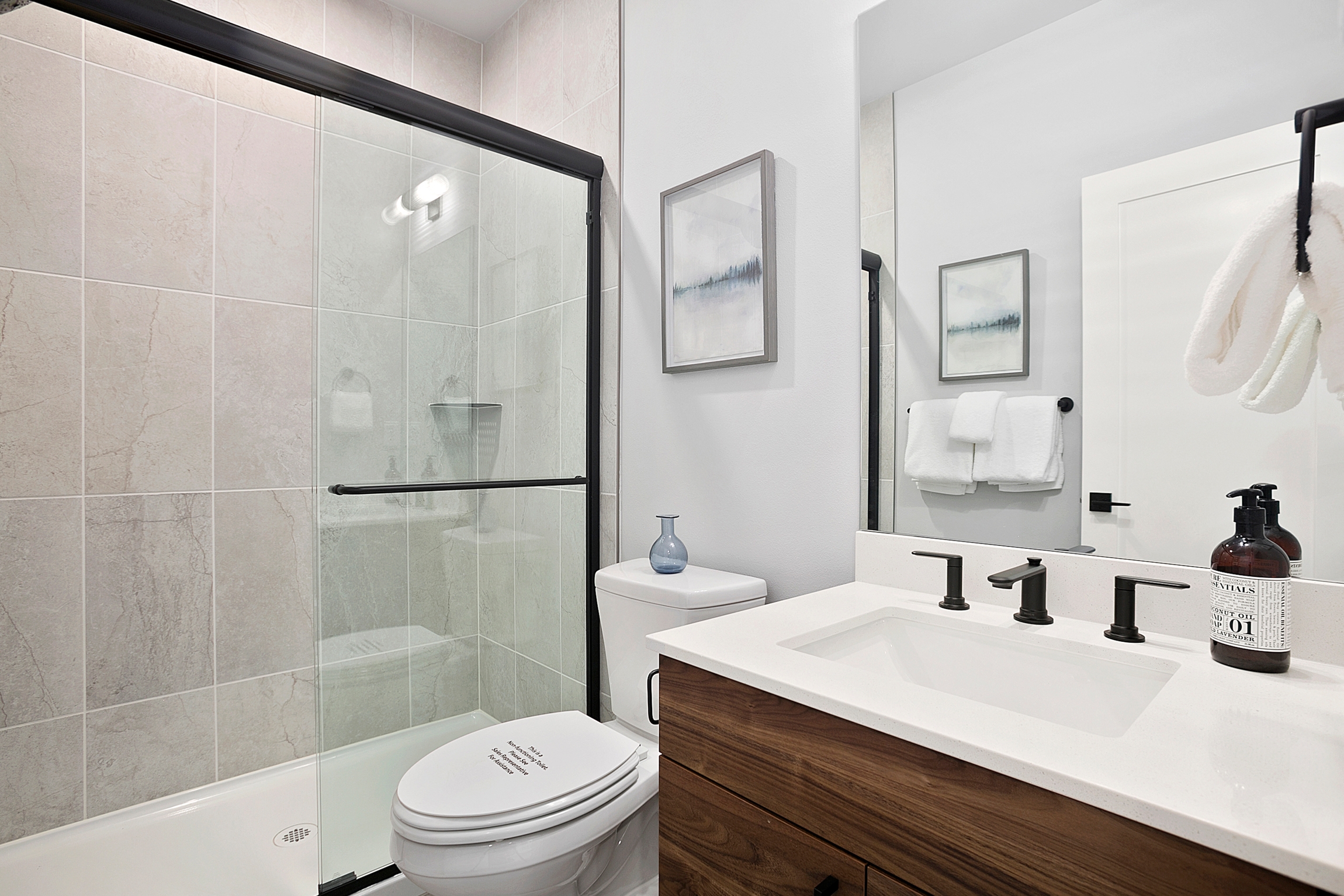 Residence 2 offers 2,956 square feet of beautifully crafted space with 4 bedrooms and 3.25 baths. On the lower level, the oversized bonus room can serve as a versatile guest suite. It opens to a private covered patio and features a full bathroom, built-in cabinetry, and oversized windows trimmed with fine millwork, blending elegance with comfort.