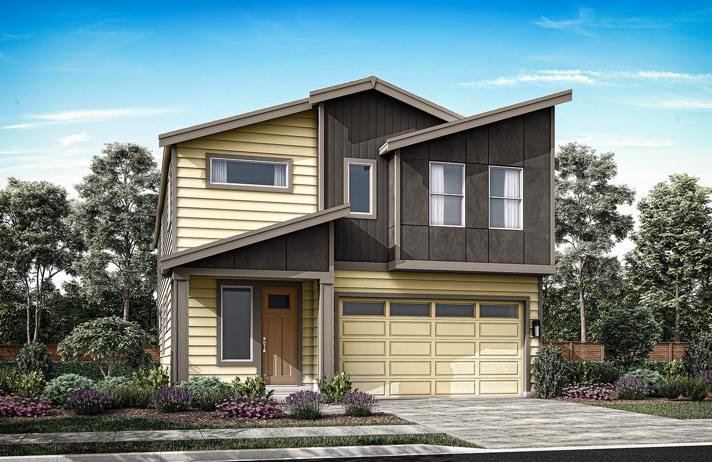 With 2,710 sq. ft., the Whidbey plan has 5 bedrooms, 2.75 bathrooms, and is thoughtfully designed for comfort and functionality. The main floor welcomes you with a covered porch and a foyer that includes a large coat closet for added convenience. You’ll appreciate the den/guest bedroom with a 3/4 bathroom, perfect for guests or a home office. The great room flows seamlessly into the kitchen (with a walk-in pantry!) and dining area, where easy access to a covered patio allows for outdoor relaxation.