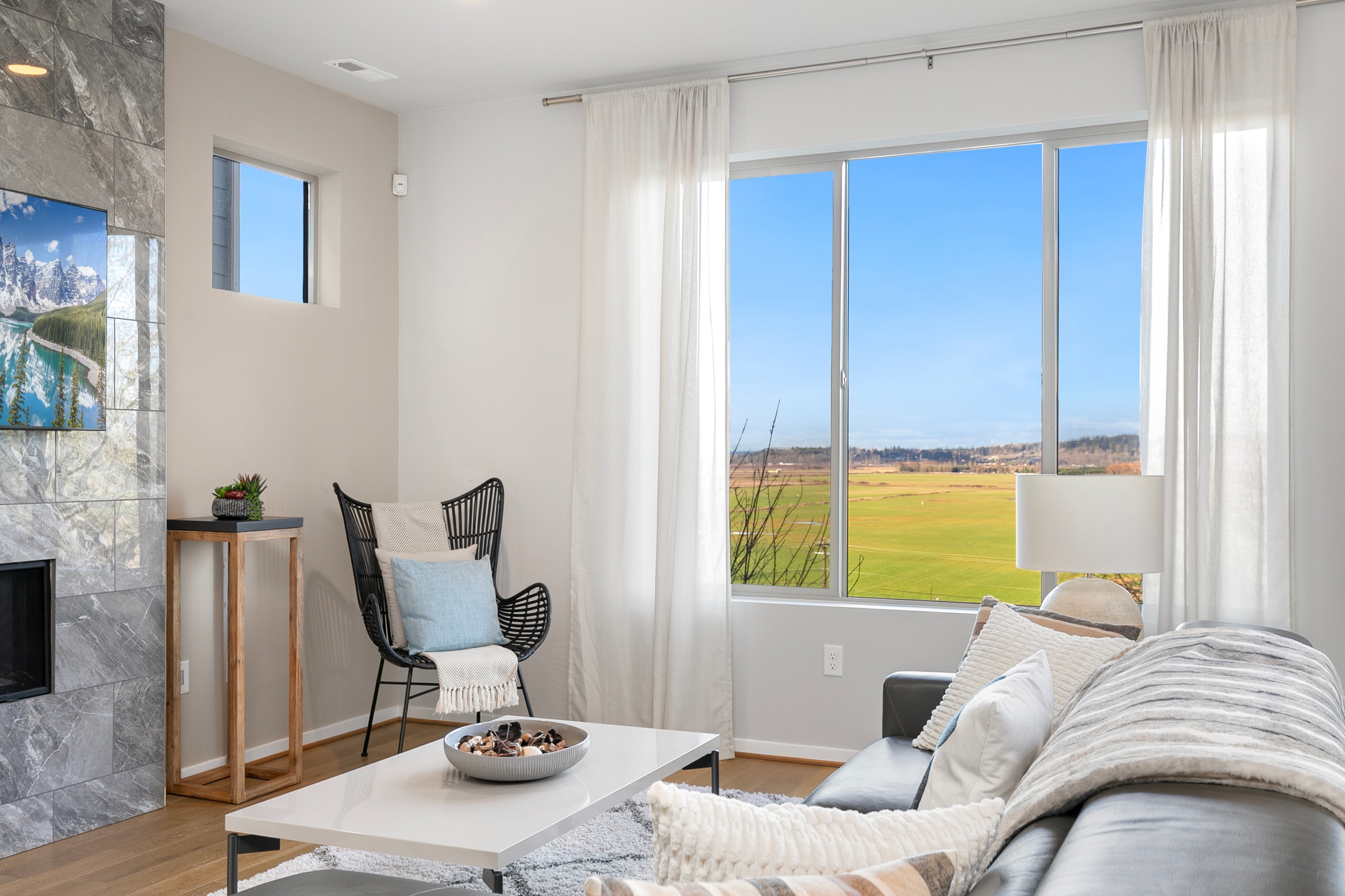 Conner Homes proudly offers our final home at Brasswood, a beautiful 2,994 sq. ft., 4 bedroom, 3.5 bathroom, and 2-car garage former model home. This spacious 3052 Floor Plan has a fully built-out basement that includes a bedroom, media room/flex space, a full bathroom, and semi-covered patio that leads to a private fenced backyard with no-maintenance turf. On the main floor, you’ll enjoy a great room with expansive windows that look toward the Snohomish Valley and a deck that is perfect for outdoor living. The amazing kitchen features contemporary cabinets, quartz counters, a walk-in pantry, and a high-end gas range. A dual-door refrigerator is included. Upstairs, you’ll find another bedroom plus bathroom. Your primary suite overlooks the Snohomish Valley and has a large walk-in closet and freestanding tub and tiled shower in the primary bathroom.