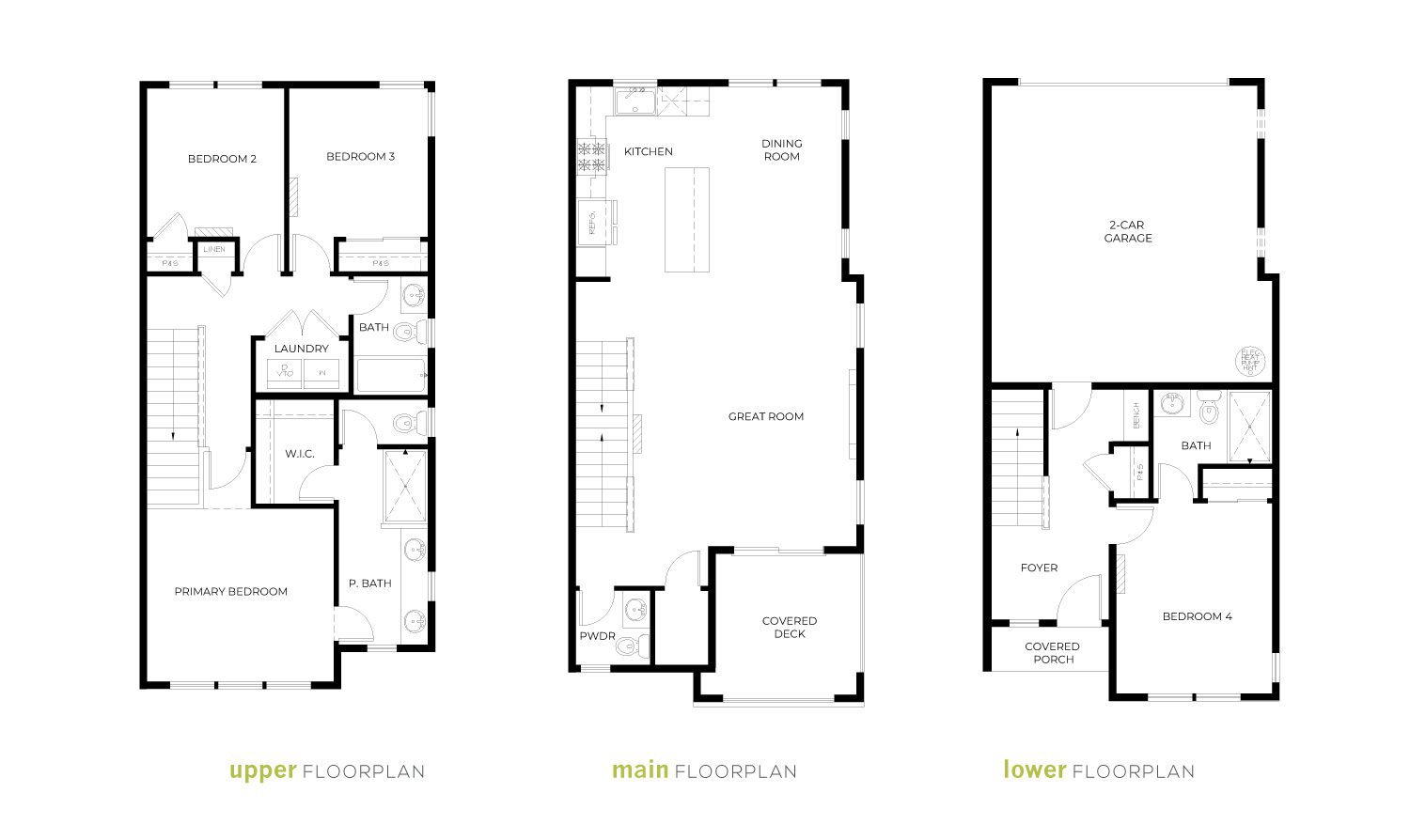 The upper level is home to the spacious primary suite with walk-in closet and private bath, two additional bedrooms, a full bath, and a centrally located laundry area. With its flexible layout and added square footage, the Sawyer is well-suited for growing households or those who simply want more room to spread out.